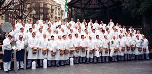 Desde nuestra fundación, el día de San Sebastián ha sido el día grande de Istingorra y como no podía ser de otra forma, los días grandes los celebramos entorno a una mesa bien surtida de comida y bebida. Los primeros datos escritos sobre el menú datan de 1949, año en que degustaron "Sopa de Crema, Fritos Variados, Merluza Cocida, Pollo asado con patatas fritas, vino, sidra, café copa y habano". Dos clásicos en el menú han sido el pollo y las angulas, el primero formó parte del menú desde la fundación hasta 1964 que fue sustituido por media langosta y las angulas se mantuvieron hasta 1998, al año siguiente por motivos obvios hubo que improvisar. |
